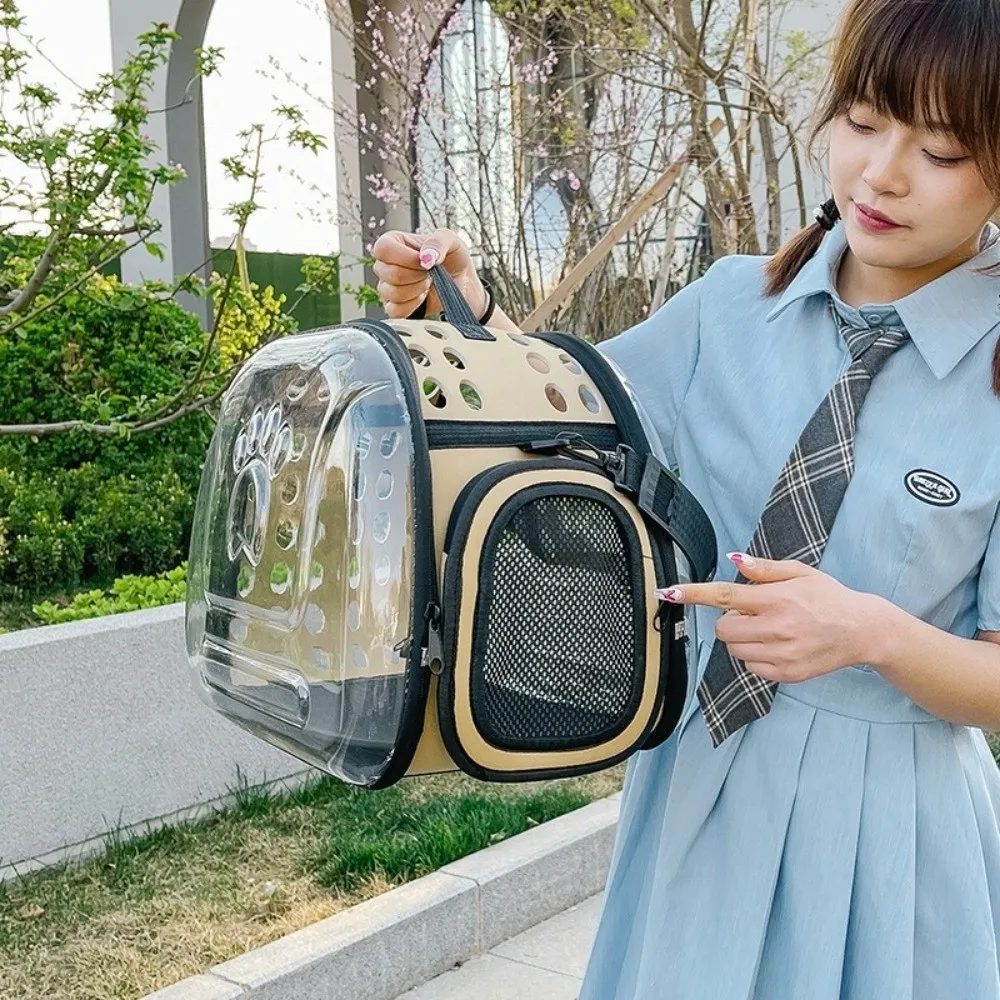 Portable Design :This Transparent Foldable Pet Travel Carrier Bag is designed for easy portability, making it perfect for outdoor adventures with your pet.